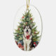 Red Bow Alaskan Malamute Dog Christmas Ceramic Ornament