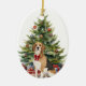 Red Bow Beagle Hound Dog Christmas Ceramic Ornament