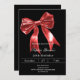 A black background, decorated with a large red bow. Personalize and add a name and party details.