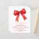 For a Christmas party with family and friends. An elegant, simple card decorated with a large red bow. White background. Personalize and add the details.