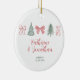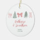Red Bow & Evergreen Trees Couple Keepsake Ceramic Ornament