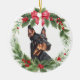 Red Bow Holly Wreath Doberman Pinscher Dog Ceramic Ornament