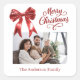 Red bow photo white script Christmas Square Sticker