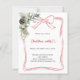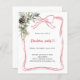 For a Christmas party with family and friends.. Decorated with a red simple hand-drawn bow, greenery and a pine cone. Personalize and add the details. Christmas party with a heart.