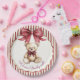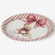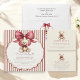 Make your baby shower extra special with these delightful red bow teddy bear paper plates. The centerpiece is a beautifully illustrated teddy bear, radiating cuteness and charm with its matching red bow. Encased within a decorative scalloped frame, the bear is set against a backdrop of cheerful red and white stripes. The charming phrase 'We can Bearly wait!' resonates with the excitement of a new arrival. These plates are designed to add a touch of sweet elegance and playful fun to your baby shower, ensuring a memorable celebration for parents and guests alike.