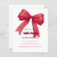A white background, decorated with a large red bow. Personalize and add a name and party details.