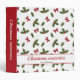 Red Bows And Christmas Holly Plants Pattern & Text 3 Ring Binder