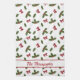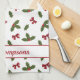 Red Bows And Christmas Holly Plants Pattern & Text Kitchen Towel