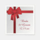 The festive Red Bows Winter Wedding Paper Napkins can be personalized with the names of the bride and groom and date of their December bridal shower or marriage reception. These elegant custom wintery disposable napkins feature a red bow design with a white background that looks like a wrapped Christmas present.