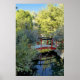 The peaceful red bridge over a pond in an old phosphate mining site that the owner has converted to quiet reflection pools in a Zen garden.