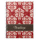 This elegant red, cream and chocolate brown damask spiral notebook cover can be personalized with your name on the stitched ribbon design. This custom notebook with a baroque meets French Country style looks sophisticated, luxurious and upscale. Use it as a journal, diary or for general note keeping. Great for home office supplies or back to school use. Artwork © Chrissy H. Studios, LLC. All Rights Reserved.