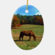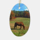 Red Brown horse, fall trees, blue skies Ceramic Ornament