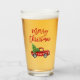 Red Brush Script Vintage Truck Christmas Glass