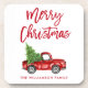 Red Brush Script Vintage Truck Christmas Tree Beverage Coaster