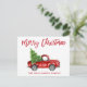 Brush Script Watercolor Vintage Red Truck with Christmas Tree - Merry Christmas Postcard