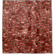 Printed clear red, seeming bubbles upon grid or leaning brick effect, but the image that looks like bubbles is under another image semi-transparent. With effect of illusion which can cause the perception of something metallic illuminated or bright.