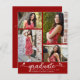 Be proud, rejoice and showcase this milestone of your favorite grad! Send out this girly, stunning, simple, modern, personalized 4 photo collage budget announcement invitation for an event to remember. A fun, playful visual of white script handwriting and cute, playful hearts, along with her name, class year, and school and 4 photos of your choice overlay a brick red background. Personalize the custom text with your grad’s name, school and class year on the front. On the back, add your personal note, next school she’s attending, party information, etc. on the red background. Guaranteed to add stylish fun to their special occasion!