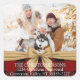 Your photo and return address with a red and black buffalo check plaid background and accented with a gold bow.