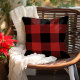 Modern farmhouse holiday red and black buffalo check plaid indoor or outdoor throw pillow. Use the design tools to add your own text and photos and select from all of our pillow styles to create your own unique one of a kind design!
