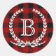 Red Buffalo Check Pattern Monogram Classic Round Sticker