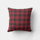 Red Buffalo Check Plaid Family Name Monogram Throw Pillow