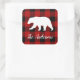 Red Buffalo Plaid & Bear | Personal Name Gift Square Sticker