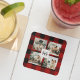 Red Buffalo Plaid & Collage Photo With Initial Glass Coaster