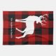 Bring cozy cabin charm to your holiday home with this personalized red buffalo plaid kitchen towel. Featuring a classic deer silhouette and your custom family name, this festive design adds warmth and rustic style to your Christmas kitchen or dining space.