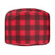 Red buffalo plaid lumberjack check sitting pouf. Custom color home decor with checkered pattern. Personalize with your text optionally. Round seating pouf for living room, office, kid's room, baby nursery and other places. Put up your feet and relax. Zippered cover.