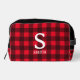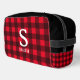 Red buffalo plaid lumberjack pattern personalized toiletry bag gift. Add your own custom name and monogram. Unique Birthday gift idea for men. husband, father etc.