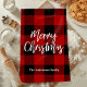 Red Buffalo Plaid & Merry Christmas |Personal Name Kitchen Towel