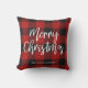 Red Buffalo Plaid & Merry Christmas |Personal Name Outdoor Pillow