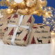 A Christmas woodlands theme of buffalo plaid pine trees, minimalistic Christmas trees, black reindeer, and deer against a simulated Kraft paper backdrop, “Merry Christmas” design. Make your Christmas celebrations truly special by adding a “woodland” flair to your gifts, ensuring they stand out under the tree.!