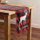 Add a touch of rustic charm to your holiday table with this classic red and black buffalo plaid table runner. Featuring a majestic reindeer silhouette and your family name, it's the perfect centerpiece for your Christmas feast. To customize, simply click 'Personalize' and enter your family name to create a one-of-a-kind piece.