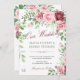 Red Burgundy and Blush Pink Roses Monogram Wedding Invitation