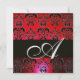 RED BURGUNDY BLACK DAMASK MONOGRAM , ruby white Invitation