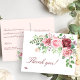 Classy elegant wedding thank you postcard with beautiful watercolor floral arrangements with blush pink and red burgundy peony garden roses with green leaves and foliage and a trendy hand lettering chic calligraphy script. +++++++++++ Personalize it with your custom text and signature on the reverse! +++++++++++ Suitable for spring, summer or autumn fall garden outdoor weddings thank you.
