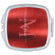 Elegant Trendy Red Burgundy Maroon Brushed Metal Monogram Script Compact Mirror