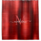 Red Burgundy Brushed Metal Monogram Girly Script Shower Curtain