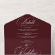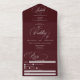 Chic red burgundy and white elegant classic call in one calligraphy wedding invitation with rsvp, accommodations, details, and more info. With a beautiful brush calligraphy script, all the colors are editable.