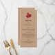 On a burlap coloured background a subtly monogrammed red maple leaf highlights this menu.