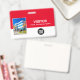 Easily personalize this Custom Visitor or Employee Name Badge with Photo, Scan Bar Code and business logo, with lanyard included. A simple business design in red and white colors fully customizable in front and back sizes, sans-serif basic and modern fonts and a professional and clear look. Avaiable with or without lanyard, metal clip or with retractable. No minimum order.