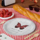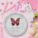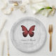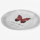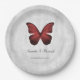 Elegant and simple Wedding paper plates featuring a Red Butterfly against a gray grunge background. This design is a unique choice for a modern wedding. Easy to customize with your wedding details. Click "Customize It" to find more personalization options.