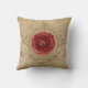A red cabbage rose in the center of an antique style frame on a dark beige aged background throw pillow. A versatile and gorgeous accent pillow for any room of the house.