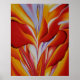 This is a reproduction of “Red Canna”of 1924 by Georgia O’Keefe. This prolific American artist was thirty-six years old when she created this masterpiece which was a continuation of her efforts to create abstract patterns from the forms of nature. This “moher of American modernism” had been recognized for eight years at the time of this work and it was in this year that she married her companion, Alfred Stieglitz. This was only the beginning of her storied career in New York Hawaii and New Mexico. She survived her husband by forty years, dying in Santa Fe in 1986 at the age of ninety-eight years.