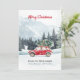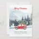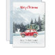 Red Car Christmas Tree Mountain Holiday Card