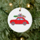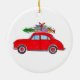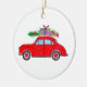Red Car with Christmas tree Watercolor Ceramic Ornament