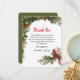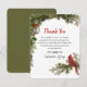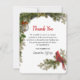 A funeral thank you card to send out to friends and family who have shown you love and support during your time of grief. Featuring an image of a red cardinal bird perched on a winter fir branch, and a simple thank you note which can be personalized.