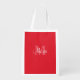 The front of the tote includes a stylish monogram and personalized name, while the reverse side showcases the charming cardinal illustration among the birch trees. The minimal winter artwork and soft neutral tones create a timeless seasonal design perfect for everyday use during fall and winter.