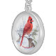 Red Cardinal Bird Sits On A Tree in Snowing Forest Silver Plated Necklace